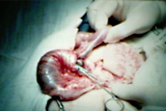 Laparotomia mostrando a invaginação