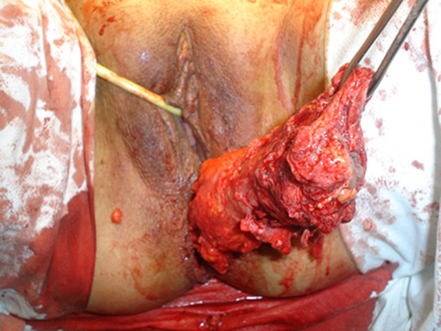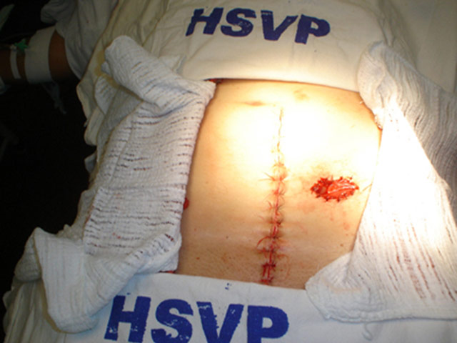 Cirurgia terminada já com colostomia definitiva.