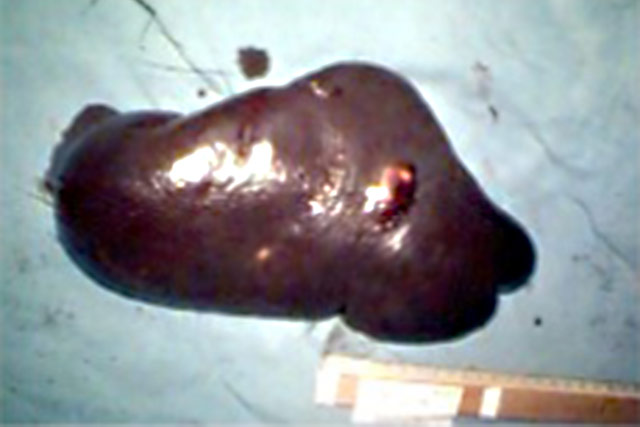 Áreas de infarto esplênico em paciente com anemia hemolítica.